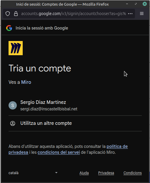 Aquesta és el meu compte corporatiu de Miro: