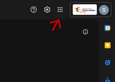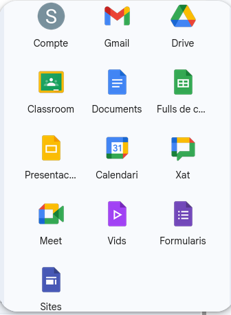 Mentre estiguis usant un producte de Google en la part superior dreta et sortirà un quadrat amb 9 punts hauràs de clicar i et sortirà un menú desplegable i ja podràs moure’t fàcilment entre els serveis de Google.