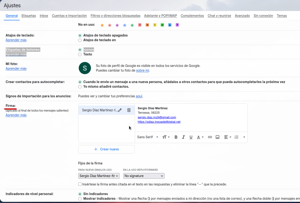 En la pestanya “General” hauràs de buscar l’apartat “Signatura”