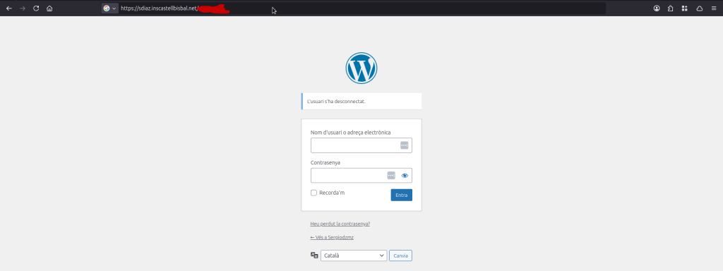 Aquest és el meu accés per a iniciar sessió en el WordPress: