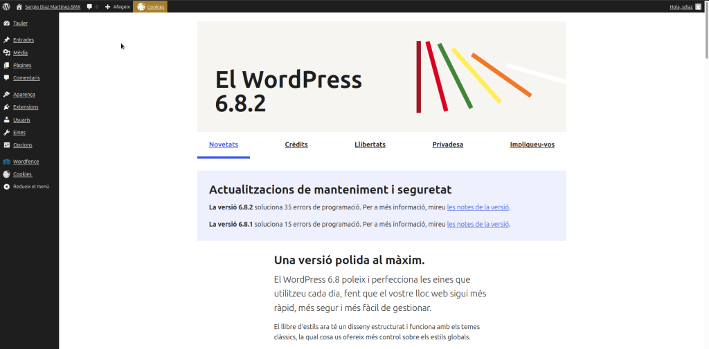 En entrar a la meva pàgina per a administrar la meva WordPress em sortirà això:
