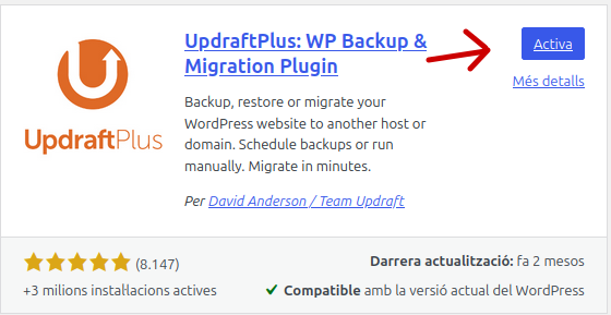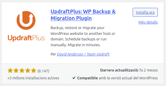 Per a fer còpies de seguretat al núvol en WordPress haurem d’utilitzar un plugin en el WordPress , el plugin que usarem en aquest cas sàrria “Updraftplus”.