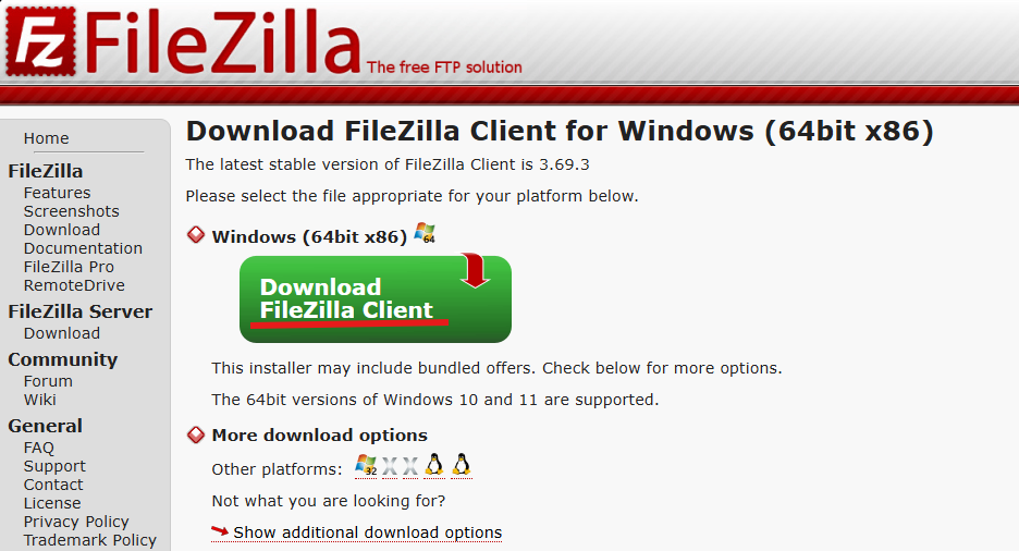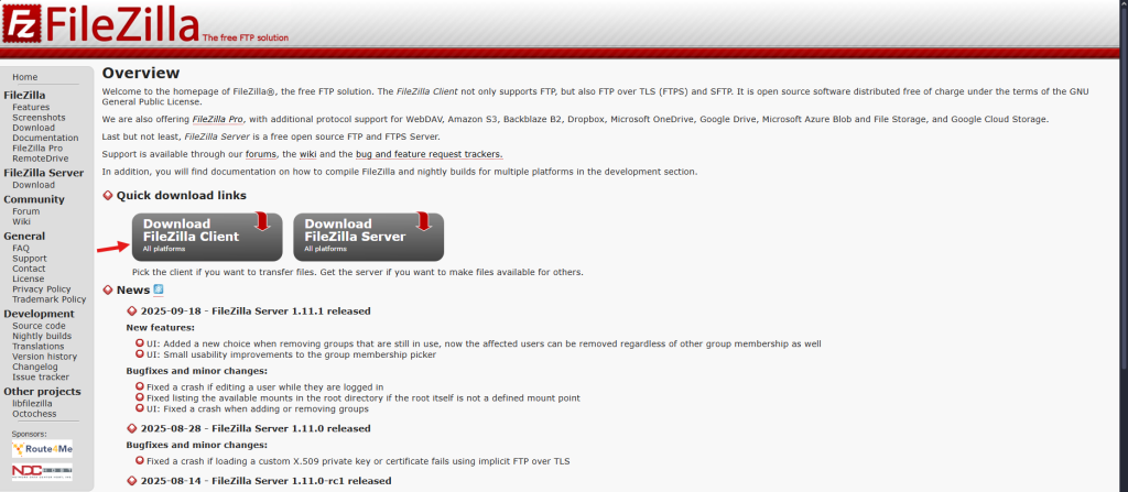 2 pas: Quan estiguem en la pàgina web ens sortirà el botó per a descarregar-lo “Download FileZilla Client”