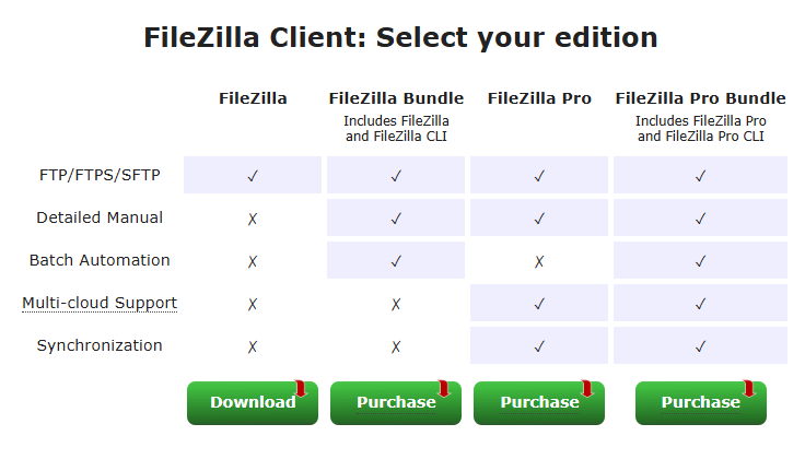 3 pas: Quan li donem a descarregar ens sortirà un menú en què l’haurem de triar que versió volem de FileZilla, la primera de l’esquerra és la gratuïta les altres hauràs de pagar diners.