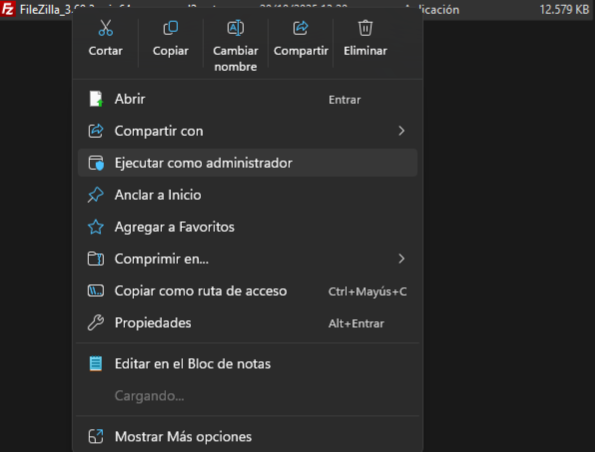 4 pas: quan l’hagis descarregat anirem a la ubicació on tinguis el “FileZilla” i haurem de donar-li clic dret i executar-ho com a administrador: